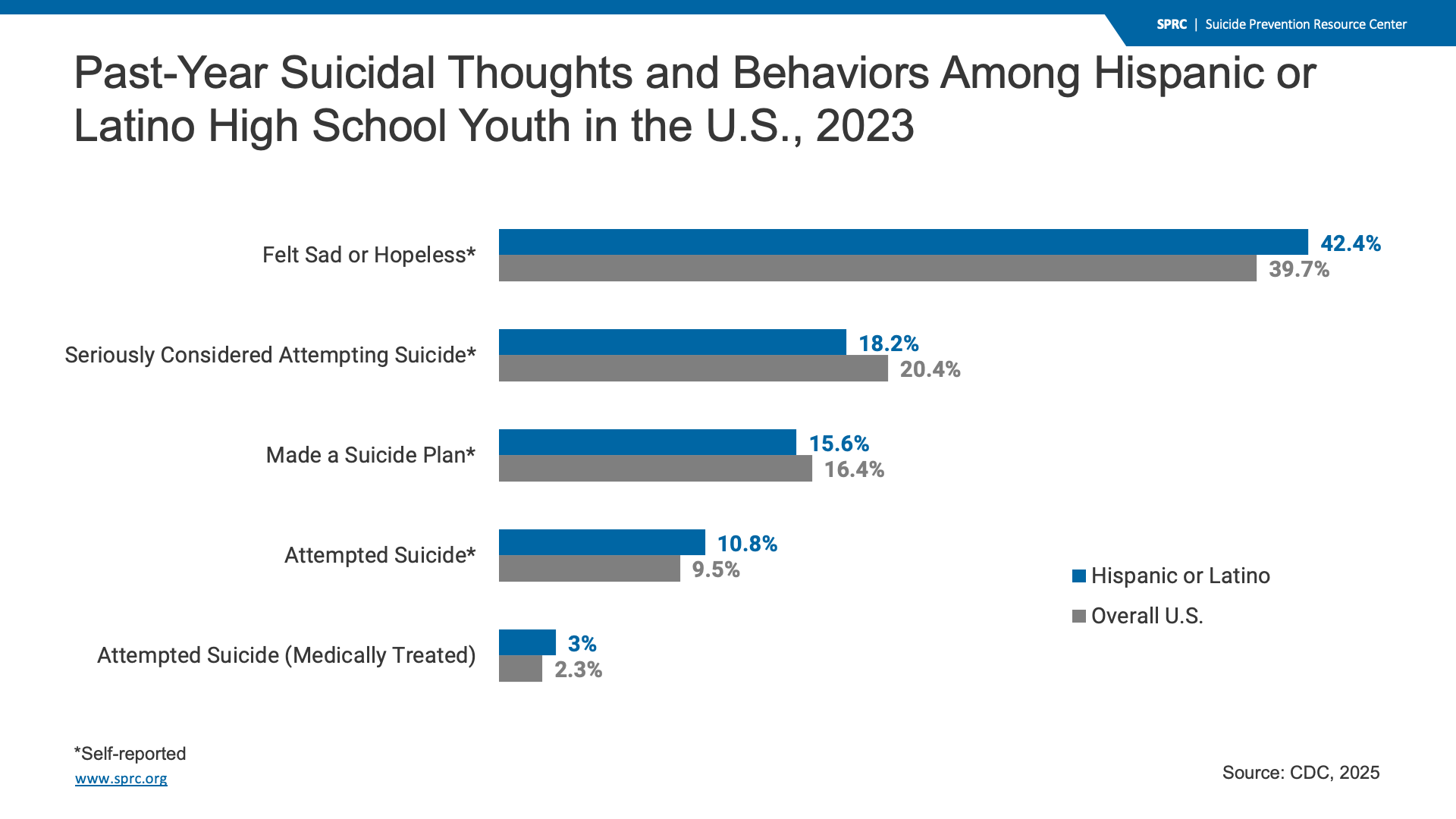 Past-Year Suicidal Thoughts and Behaviors Among Hispanic or Latino High School Youth in the U.S., 2023